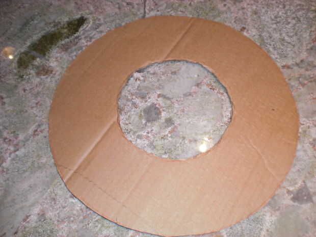 Corte a lo largo del borde del círculo más pequeño. Debe dejar con forma de anillo de cartón, que será la base de la corona de.