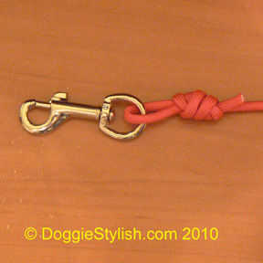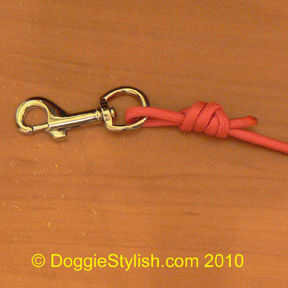 Corte el paracord, dejando aproximadamente 1/2 pulgadas de exceso. Necesita un poco más ya que el nudo no ha apretado completamente de perro caminando.