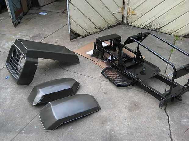 La nueva capilla y las defensas eran lijar y pintadas. Usé pintura de motor de cerámica de alta temperatura Duplicolor. Por alguna razón que he encontrado uno de la sonaja mejor pueden acabar de pinturas para conseguir un suave agradable. El color que tengo se llama "Hierro fundido". Bastante fresco y diferente de lo que mayoría de la gente utiliza en sus carreras de cortacéspedes. Parece loco colores fluorescentes son muy populares.