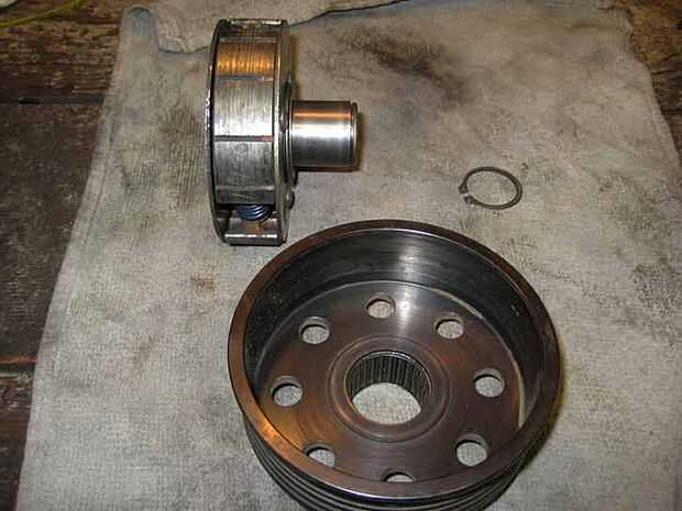 Luego fue instalado el motor y el embrague viejo agregada. Este ha sido un fantástico embrague con más de 3 años de uso y apenas desgaste. Me desarmar y aplica una capa muy delgada de grasa a los rodamientos. También limpié los zapatos un poco.