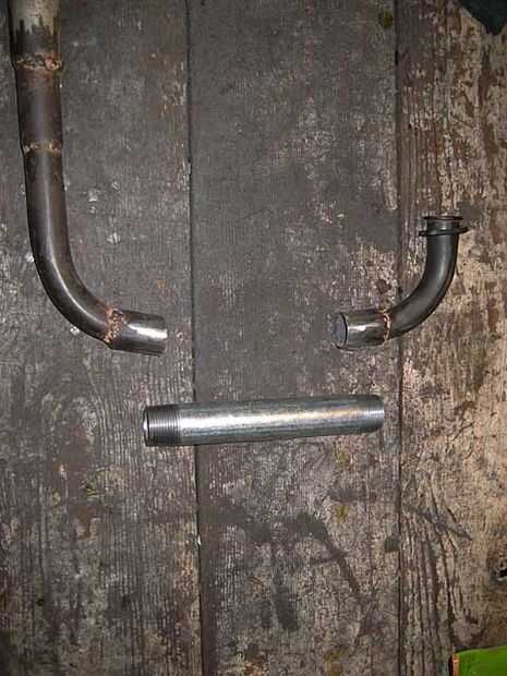 El escape fue un poco complicado. Puesto que el escape estaba en el otro lado tuvo que cortarse por lo que podría invertirse la curva para hacer frente a la otra forma. De la lumbrera de escape era más alta que del motor. Para lograr la longitud adicional que suelda con autógena en un pedazo de tubo. Una palabra de ADVERTENCIA: No soldar acero galvanizado. La tubería usé fue galvanizada pero pasé mucho tiempo esto de pulir apagado. Si soldar galvanizado usted puede enfermarse.