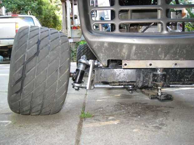 1: ajuste de la rueda derecha delantera para que tuviera más comba. Resultó que había de alguna manera soldado el soporte de eje derecho en el ángulo equivocado. Por suerte todo lo que tenía que hacer era simplemente hilo el heim superior conjunta hacia adentro hasta que la curvatura se corrigió. La rueda derecha se cayó también hacia abajo un poco. Esto permitió que la parte delantera derecha empujar hacia abajo en la parte delantera izquierda.