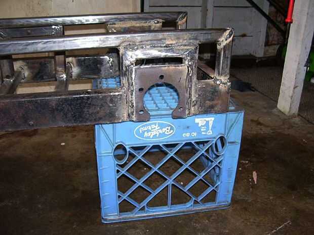Estos marcos cuadrados eran soldados en el marco, luego el final que ha cortado fue soldada con autógena en la parte posterior. Los requisitos de altura mínimos para mi clase es de 4" de la estructura al suelo. Así que es importante saber qué tamaño de las ruedas le plan uso y dónde montar los ejes para cumplir con ese requisito. Cuanto más baja se puede ir, el mejor manejo de la cortadora. Sitio de la mina en 4" de la tierra.