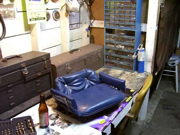 Ahora el asiento. Este paso es realmente algo importante. Usted encontrará que es difícil mantenerse en estas Segadoras en un camino de tierra lleno de baches con ángulos filosos. La inercia se amenaza con lanzar. Pero al mismo tiempo, si vuela, quiere limpiar la "escena del accidente" y no Haz atropellado por su propio cortacésped. Así debe ser baja. La solución es tener un asiento bajo con lados bajos que mantiene su trasero al asiento. Realmente le dará más control. Una última palabra-it ayuda a tener relleno. Un acero asiento con acolchado de no puede ser... doloroso. Mi esposa mina había cubierto con tapicería de una silla vieja.