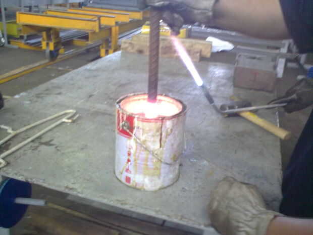 La parte debe ser caliente hasta ser naranja y se coloca lentamente en el agua otra vez, después de que solo es para cortar del lado opuesto para hacer correcta la longitud ideal.