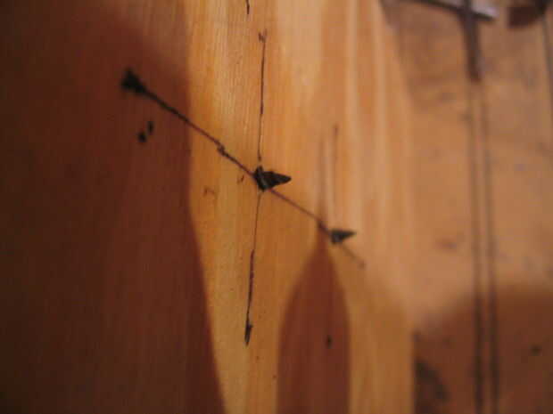Atornille tornillos en la Junta para que sólo las puntas son a través de (encontré que eso facilita la línea)