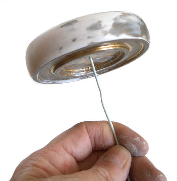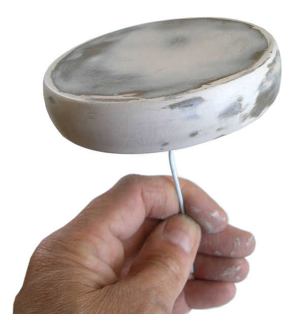 ¿Recuerdas la punta? encontrar alguna forma de mantener el modelo para que pueda rociarlo y luego dejar que se seque sin que conseguir pegado algo o conseguir marcas en él. Supongo que la punta aquí es pensar en esto antes de empezar a spray y no medio camino cuando está mojado! En este caso yo suavemente se basaba el disco en un alambre de percha penetra en el agujero que quedaba en la parte superior, como se llena el orificio en la base.