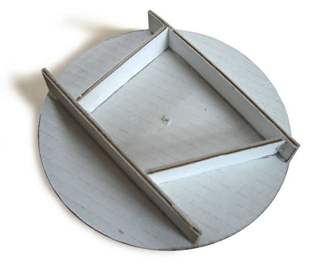 En este caso yo corte dos discos y consumido espaciadores de derecha para asegurarse de que estaban en un constante espacio aparte y luego envuelve un trozo de cartón alrededor de la Asamblea para darme la forma de disco.