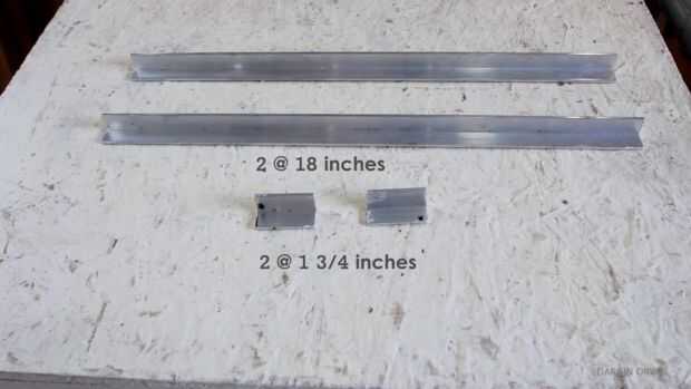 Mientras se está secando el pegamento, vamos a trabajar en el metal. Necesitarás los siguientes cortes de aluminio angular: