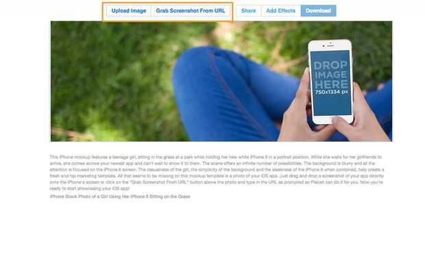 Una vez que haya navegado a través de las plantillas de la maqueta en placeit .net, elegir el que mejor se adapte a su producto y utilizarlo, es sencillo. Simplemente arrastre y suelte una captura de pantalla de tu sitio/aplicación en el dispositivo. O escriba la URL de arriba y Placeit a tomar una captura de pantalla para que
