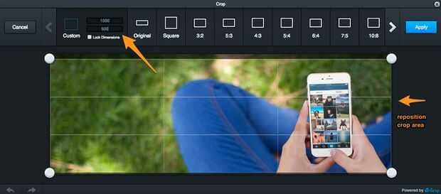 Twitter es 1500x500px, así que seleccione el icono de cosecha y ajustar a la altura del 500. Aparecerá un rectángulo, simplemente seleccione el área de cultivo deseado. Haga clic en aplicar.