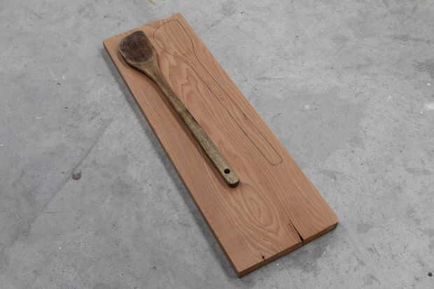En primer lugar, dibujar la forma de cuchara en un pedazo de madera.