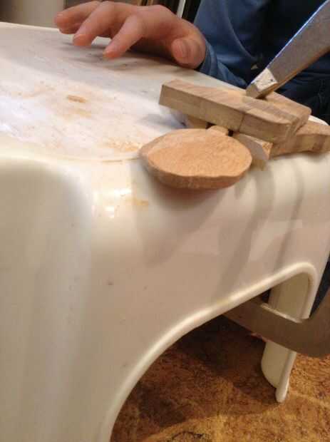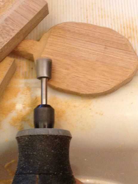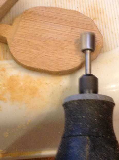 en primer lugar, alrededor de un lado hasta que parece que al 3 º de la parte superior del cuadro y luego otra alrededor de la misma manera. cuando lo ha hecho, alrededor de la parte delantera y luego realizar la parte trasera redondo al tacto con la misma broca. Ahora se puede lijar la parte posterior lisa.