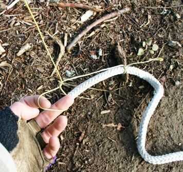 Para hacer esto, atar la throwline a la línea de escalada sobre un pie del extremo. Hay un montón de tirones que funcionarán para este - investigación del tema en línea. Consulte las fotos de abajo también.