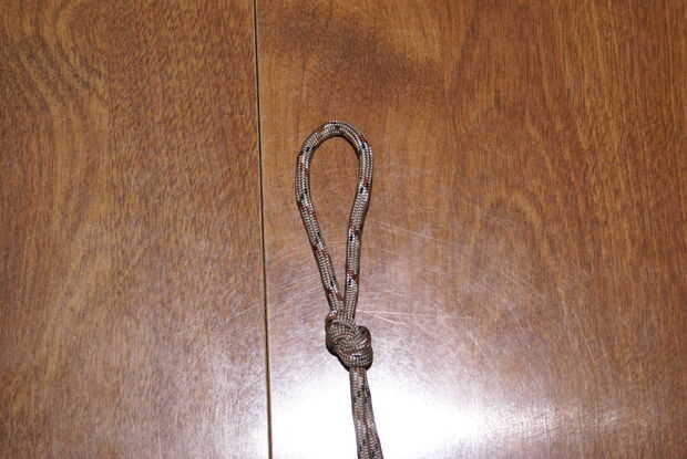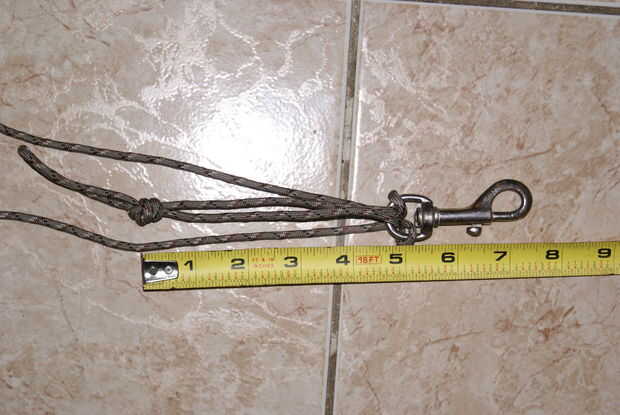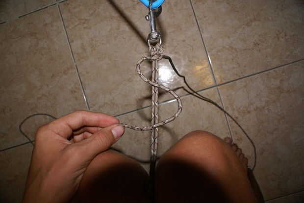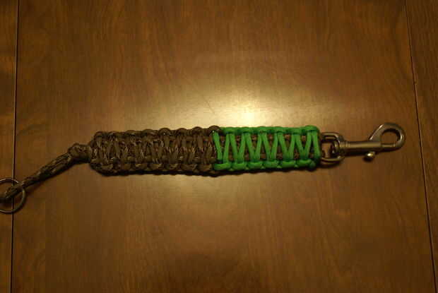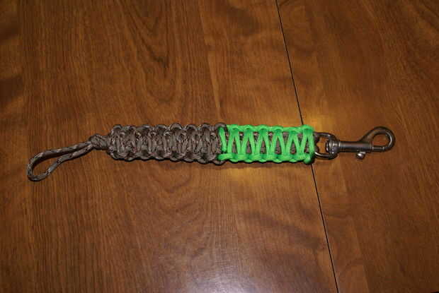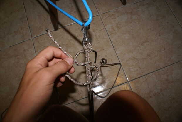 Ahora puede lazo los extremos libres sobre su giratorio clip/gancho / o llavero un par de veces y que apriete para arriba así que hay un espacio de 5 pulgadas entre el nudo/lazo de la cuerda y la base del clip/gancho/llavero.