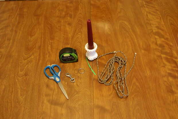 También se necesitan son tijeras, una cinta métrica, una vela (encendedor funciona también), un gancho y un llavero.
