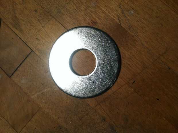 Paso 1: agarrar su amoladora de ángulo (mi herramienta favorita, por cierto), una arandela de metal, Metal caminó broca, un taladro, unos archivos, y si eres inteligentes pinzas, un tornillo de banco vendría práctico también.