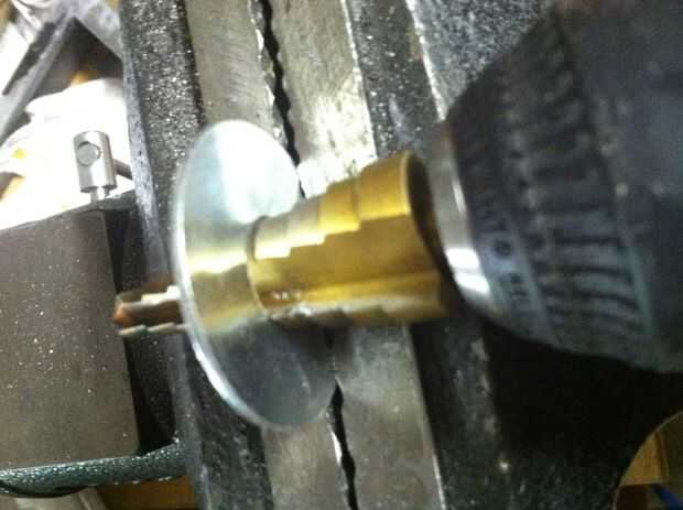 Paso 3: cargar tu broca escalonada de metal y jabalí hacia fuera el centro de la lavadora para el diámetro más cercano al poste de su amoladora angular. Asegúrese de que el agujero va todo el camino a través de la arandela o tienes forma de cono y no cabrá en el post. Una vez que se perfora hacia fuera, prueba colocar la arandela en la amoladora angular.