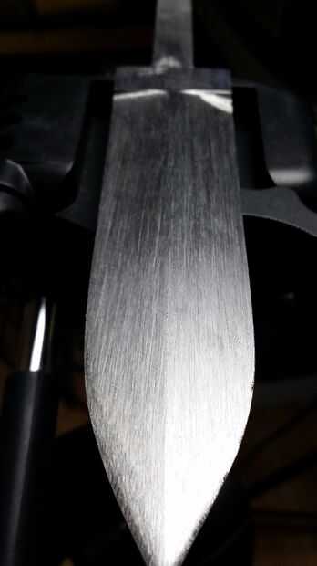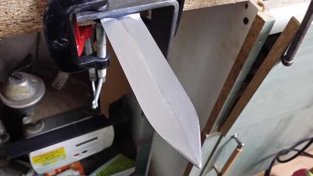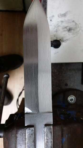 Así que usted puede haber notado no he tratados térmicamente ya que esta es una práctica y utilicé una pieza de acero barato, en vez de pagar hacia fuera para una digna pieza de acero como 01 o CS-95 y "mano arriba", no era realmente vale la pena para mí, esta es una práctica, pero si eso es lo que te de acero utilizan entonces seguir este paso pero deja al menos 1 mm (0,7 miles). por lo que no Crack/deformación del filo debido a que sin duda sería p ** s que fuera en esta etapa. Como dije estoy utilizando un archivo en este momento para perfeccionar y terminar mi cartabones, lentamente pero seguramente progresar y llegar gradualmente a mis líneas en cada uno de los laterales y refinación, noche y endereza todas mis líneas y crujientes las líneas de penetración y presentación a mi grosor de borde final de 0,1 mm (0,1 miles).