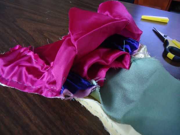 Esta vez, no utilice la trenza de pelo de caballo porque los apliques proporcionan suficiente rigidez para la parte trasera del vestido.