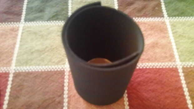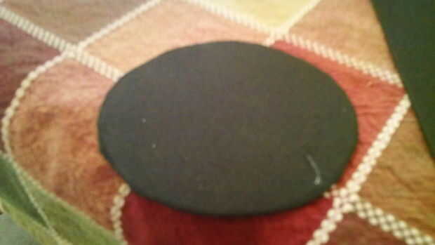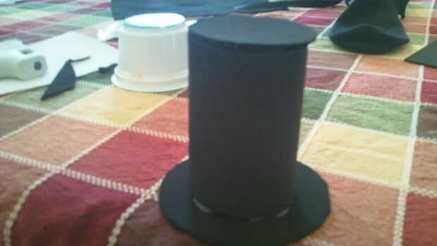 Luego cortar un trozo rectangular de espuma negra y rodar antes de que pega. Una vez que hecho esto, coloque el más pequeño círculo y el círculo más grande en la parte inferior para hacer la base de su sombrero.