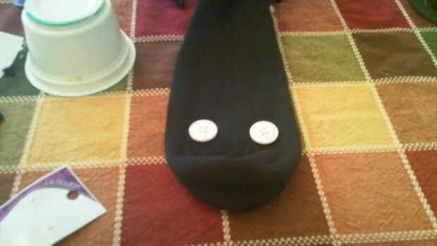 En primer lugar, coloque dos botones blancos donde quieres poner los ojos y pegar hacia abajo suavemente.