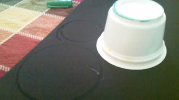 Tomar un recipiente redondo con un lado más ancho que el otro y dibujar dos círculos, también uno más grande que el otro.