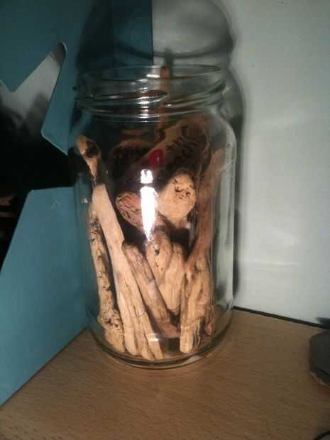 Hey! Este es mi primer instructable para que por favor no ser demasiado duro conmigo! :) Para este arte, se necesita: • Una jarra de mermelada limpios • Marcadores permanentes (sharpies) • Restos de madera • Pegamento PVA • Mucha paciencia! (No tengo)