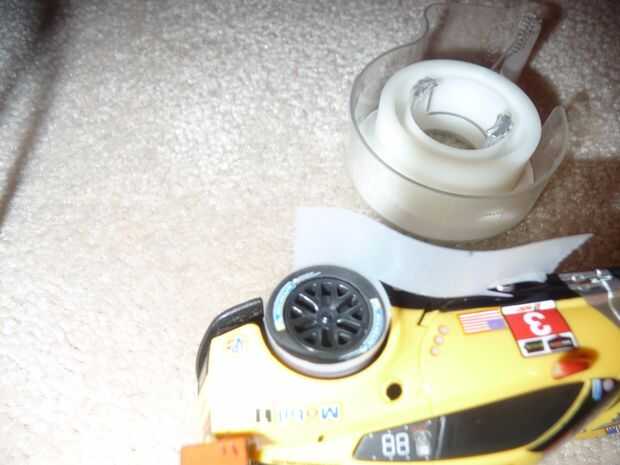 Puede hacer pequeños fragmentos con la cinta pero es mejor tomar un pedazo grande y cortar más tarde. corte cualquier exceso cinta con las tijeras. No te preocupes si hay un poco de cinta adhesiva en el exterior de la rueda no afecta la unidad.