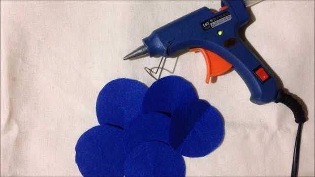 1. cortar 6 trozos de dos pulgadas azul fieltro. Una sola pieza sería la base y los restantes cinco círculos para los pétalos.