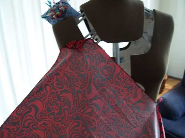 Saque vestido dejando los alfileres de costura trasera en lugar de la forma del vestido y coser la costura trasera juntos.