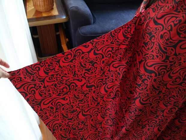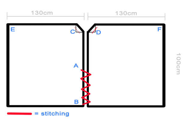 * Nota que imágenes 3 y 4 de esta sección muestran a la tela con el frente de derecha--por favor ignorarlo y pin con el revés hacia afuera, tomé estas mientras que yo estaba de medición de longitud en lugar de fijar la costura, pero pensé que eran un indicador útil de donde coser.