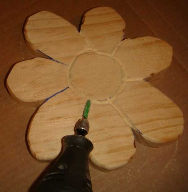 El siguiente paso es tallar los detalles de la flor con la herramienta rotatoria dremel. La flor aquí tiene detalles muy básicos, usted puede tallar los más intrincado si quieres.