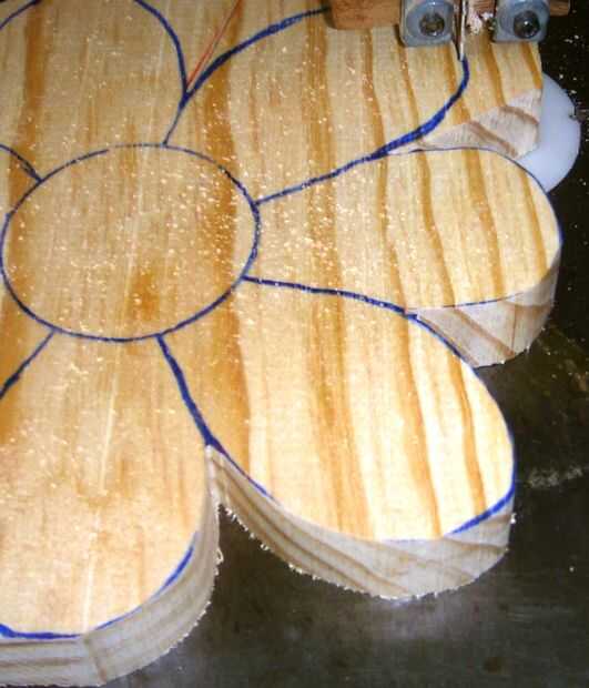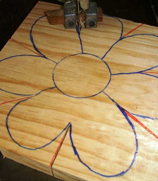 Corte la flor. Corte en esquinas apretadas con mi sierra para evitar atar las hojas de sierra en las curvas de flores (ver fotos).