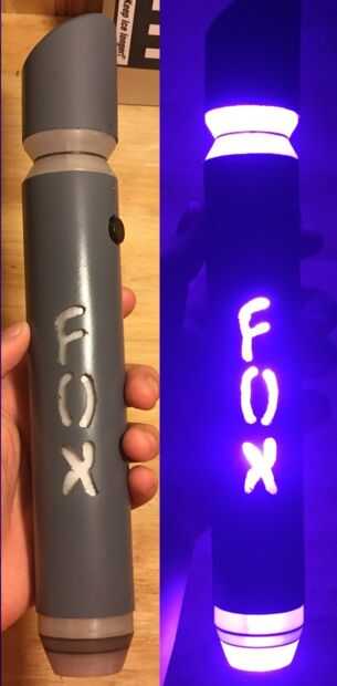 Hice este sable de luz con materiales que tenía que poner alrededor, así que sólo me costó poder tiempo y cerebro. Esto fue hecha para una amiga por su cumpleaños. Su apellido se corta en el lado y los colores vienen de una combinación de dos de sus favoritos.