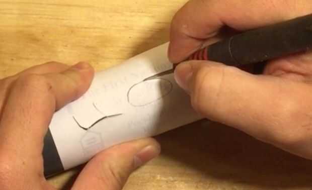 6. Utilice un taladro para hacer un piloto orificio inserto la Dremel en y siguen las líneas. Tómelo lento por lo que no deriva.