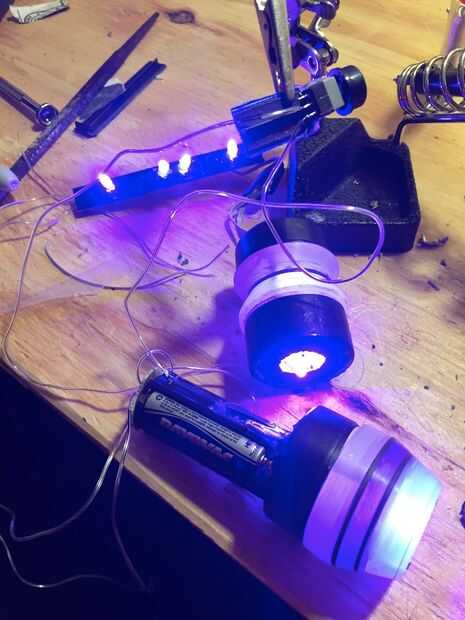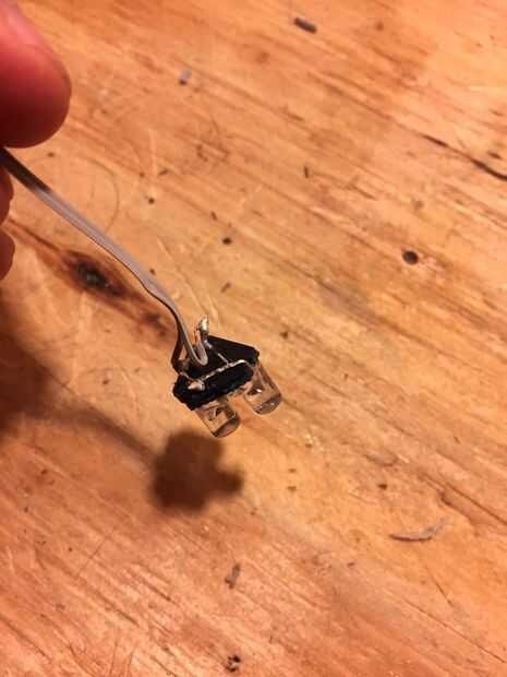 2. hecho de piezas de plástico baratas para mi LED y soldamos hacia abajo.