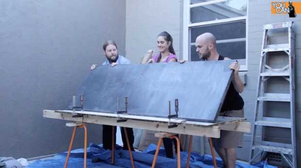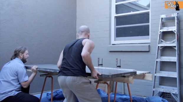 Encontré una vez que me había roto el sello de agua por debajo de lo concreto (el lado es abajo en esta etapa) con una espátula de metal era capaz de mover la parte superior. En 120 kilos no era luz pero el agua estaba creando una succión ligera.