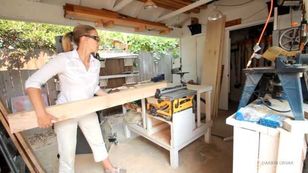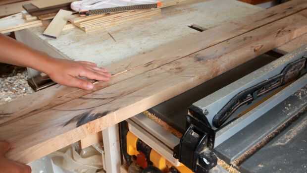 Justo antes de funcionó a través de la cepilladora, corté la madera a la mitad en la Sierra de mesa para reducir el tamaño de las piezas y la madera tenía tanta tensión en él. Todavía, incluso en este la madera es bastante grande y pesada para trabajar con un tamaño más pequeño, así que me tomé mi tiempo.