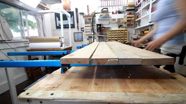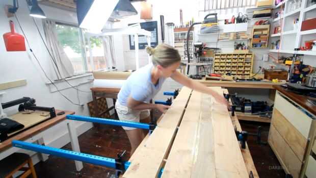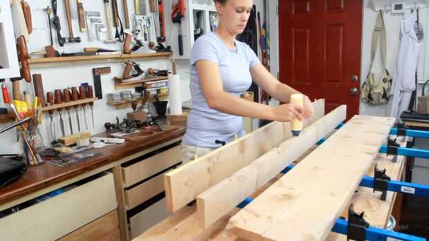 También afianza con abrazadera abajo algunas placas en la parte superior para evitar que la madera la inclinación.