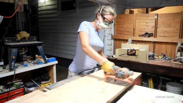 Una vez que el pegamento se seca empecé el minucioso proceso de lijado. Primero empecé con la lijadora de banda para eliminar mucho material y luego más tarde me trasladé a la lijadora orbital con un grano más fino. Este contador requiere mucho lijado. Primero a todas las piezas a la misma y luego quite cualquier arañazos. Este arce era de madera muy dura, y tardó mucho lijado para eliminar las finas marcas y arañazos.