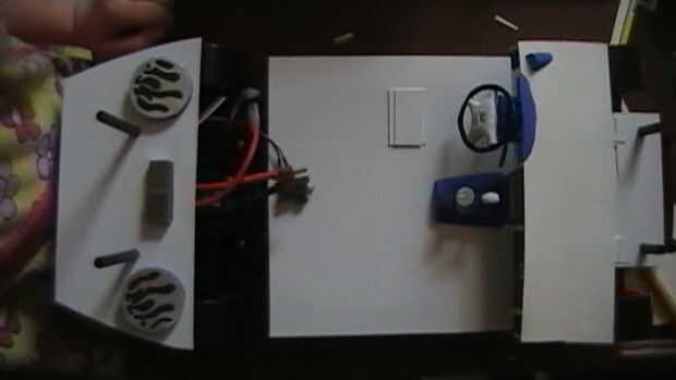 Para hacer el guión posterior utiliza los mismos pasos como el frente con la excepción de altavoces. Para el rastro solo altavoces tapa de una botella de refresco en estireno y corte hacia fuera y la pintura. Si quieres tapas de altavoz remontar la tapa dos veces más y dibujar su diseño en el interior de ese círculo. Luego con cuidado cortar el diseño.