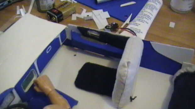 Hacer en soportes de estireno por calefacción/doblar pequeñas tiras "L" y usarlos para agregado los paneles de puerta y asientos a la base hoja de estireno que está usando la "palabra".