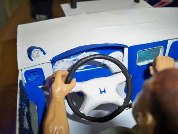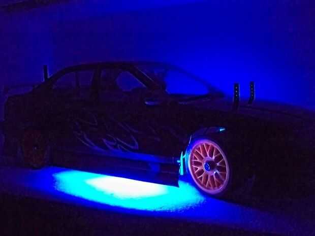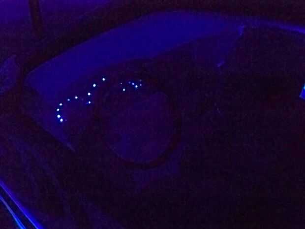 Su pequeño LED tiras y añadir a los lados debajo de los bordes del interior. Estos actuarán como efectos de suelo. Desde la parte frontal LED en el lado del conductor, utilice un poco de pegamento caliente y pegamento el cable de fibra a la punta del LED donde la luz es más concentrada. Ahora ejecute los otros extremos de los cables de fibra para el cluster del tablero. Para conseguir en los lugares correctos usé un mechero y una aguja de coser y calienta la aguja sujetando con pinzas. Una vez caliente lo suficiente yo sólo asomó lo a través del papel y plástico para hacer los agujeros para los cables de fibra en.