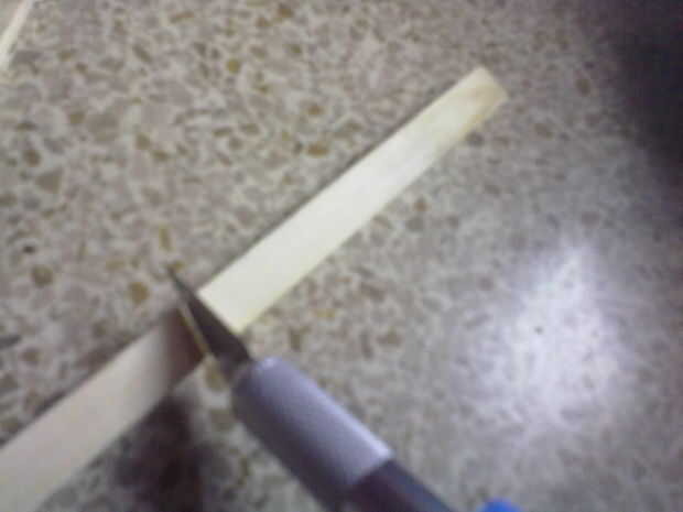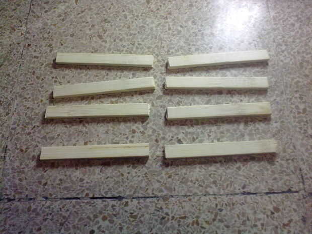 Ahora toma las otras 2 barras y cortar cada uno en 4 partes similares por lo que tendrá 8 piezas similares, utilice el lápiz y el cuchillo del exacto (ver imagen)