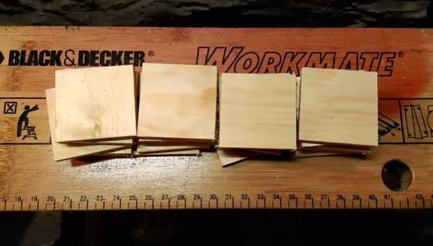 Medida hasta longitudes de 45mm de la madera Ancho 45mm. Asegúrese de que medir un número par de piezas que quieras 2 para cada segmento. Use la sierra para cortar cada pieza!