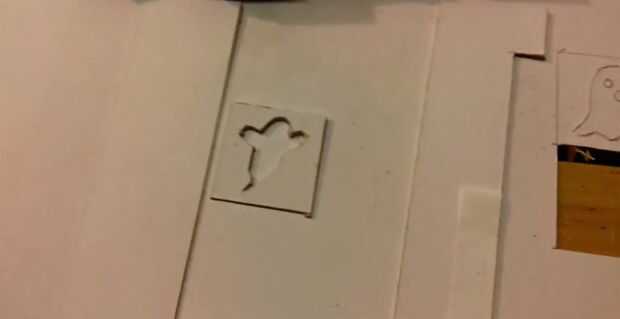 Bosquejar un diseño (en mi caso, un fantasma) y utilice su cuchillo para cortar hacia fuera.