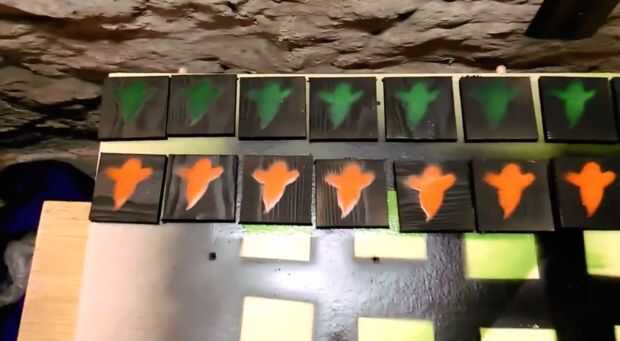 Color de una mitad del negro piezas de un color, y la otra mitad el otro color (en mi caso, fluorescente naranja y verde neón).