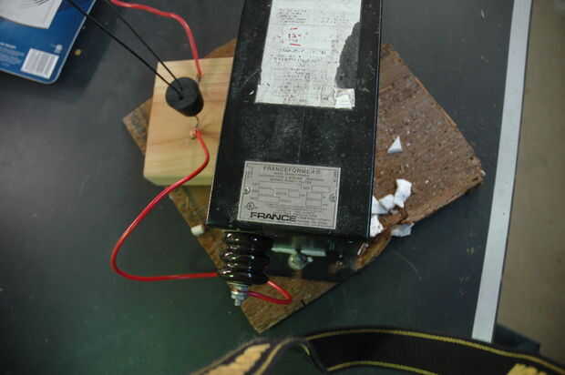 Una base no conductora debe usarse para montar los electrodos. Una base no inflamable es también una buena cosa si usted está preocupado de configurar algo en el fuego. Tenga en cuenta que en voltajes excesivos, madera ya no se mantiene un aislador y comienza a conducir la electricidad. Si esto ocurre, puede contar con que la madera para encender.
