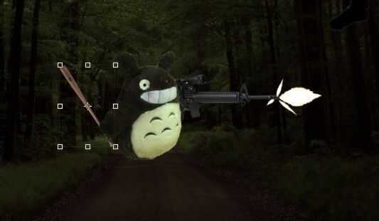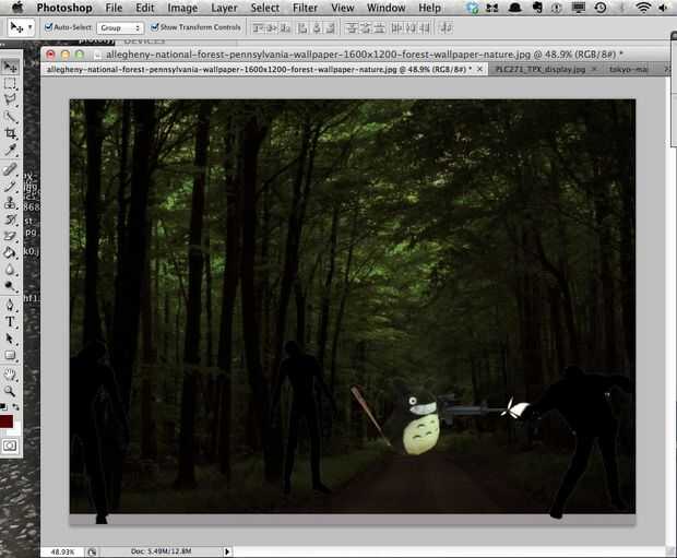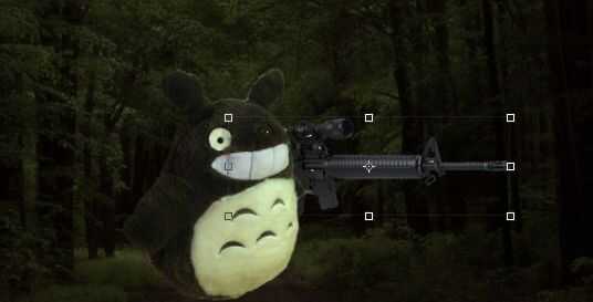 Haga clic en y seleccione una de las imágenes. Ahora mira en la esquina izquierda superior medio y marca una casilla que dice "Mostrar controles de transformación". Esto debería hacer más fácil para usted cambiar el tamaño y posición de las imágenes. Ahora arrastrar, rotar y cambiar el tamaño de las imágenes hasta que están en correcto buscando lugares. Es una buena idea ir a imagen/ajustes/tono y saturación para oscurecer las imágenes y los tinte para adaptarse a la escena mejor. Usted puede notar que las fotos son un poco desiguales alrededor de los bordes. Para hacer el ajuste mejor, simplemente utilice la herramienta de Desenfocar y Desenfocar los bordes ligeramente.